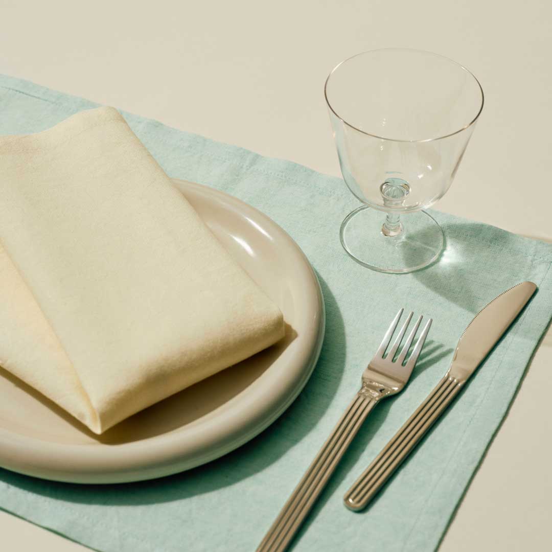 Skønne, bløde og enkle mundservietter eller små dækkeservietter i en blanding af økologisk bomuld og hør.