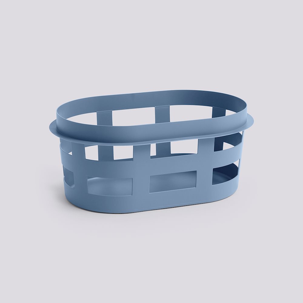 HAY Laundry basket findes i 2 størrelser, en høj og en lav. Den høje findes kun i lysegrå, mens den lave findes i flere farver.