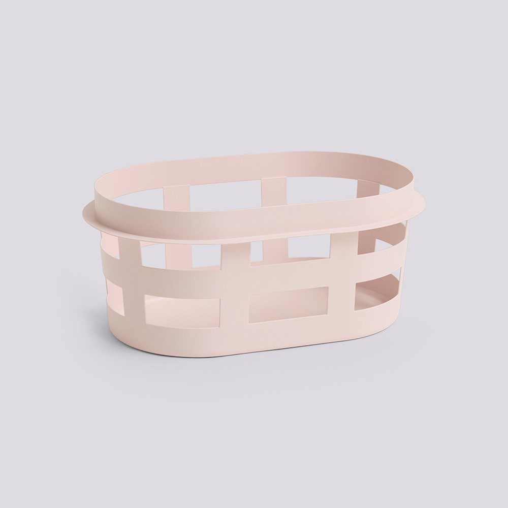 HAY Laundry basket findes i 2 størrelser, en høj og en lav. Den høje findes kun i lysegrå, mens den lave findes i flere farver.