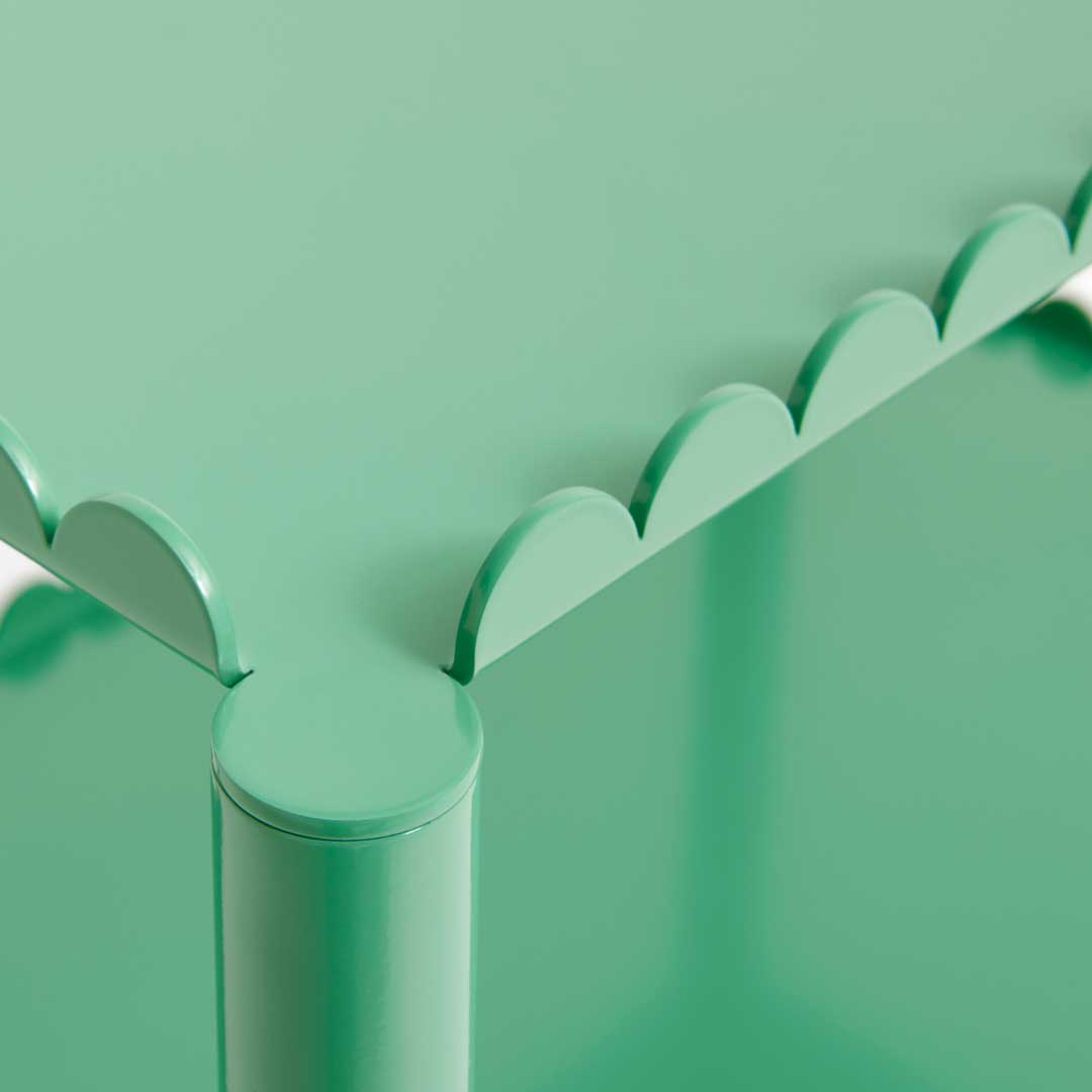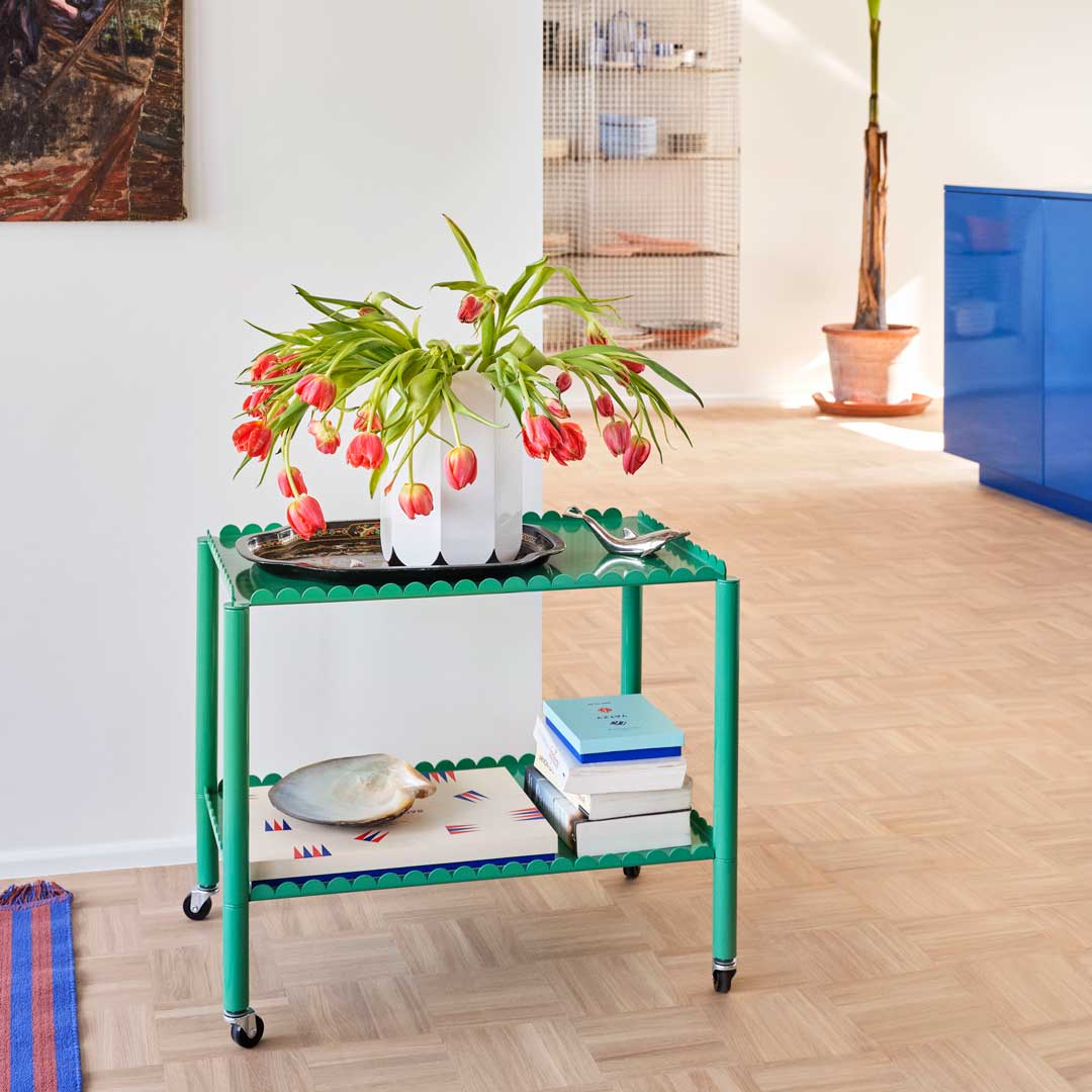 Lavet i pulverlakeret stål i et rigtig statement design, hvor de smukke bordplader er omkrandset af en bølget kant.
