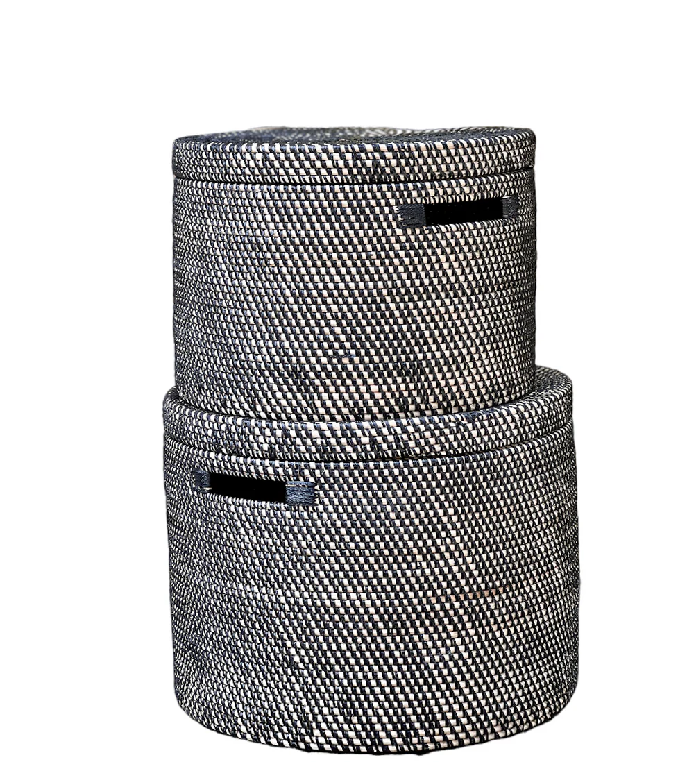 Smuk og enkel designet kurv med låg i cylinderform. Bærehåndtag er flot og diskret indlagt i designet.
