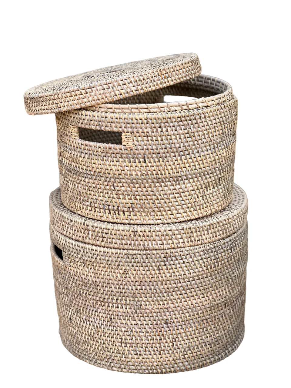 Smuk og enkel designet kurv med låg i cylinderform. Bærehåndtag er flot og diskret indlagt i designet.
