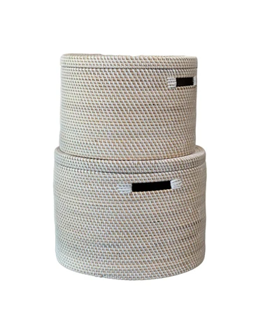 Rund kurv med låg i bambus - hvid