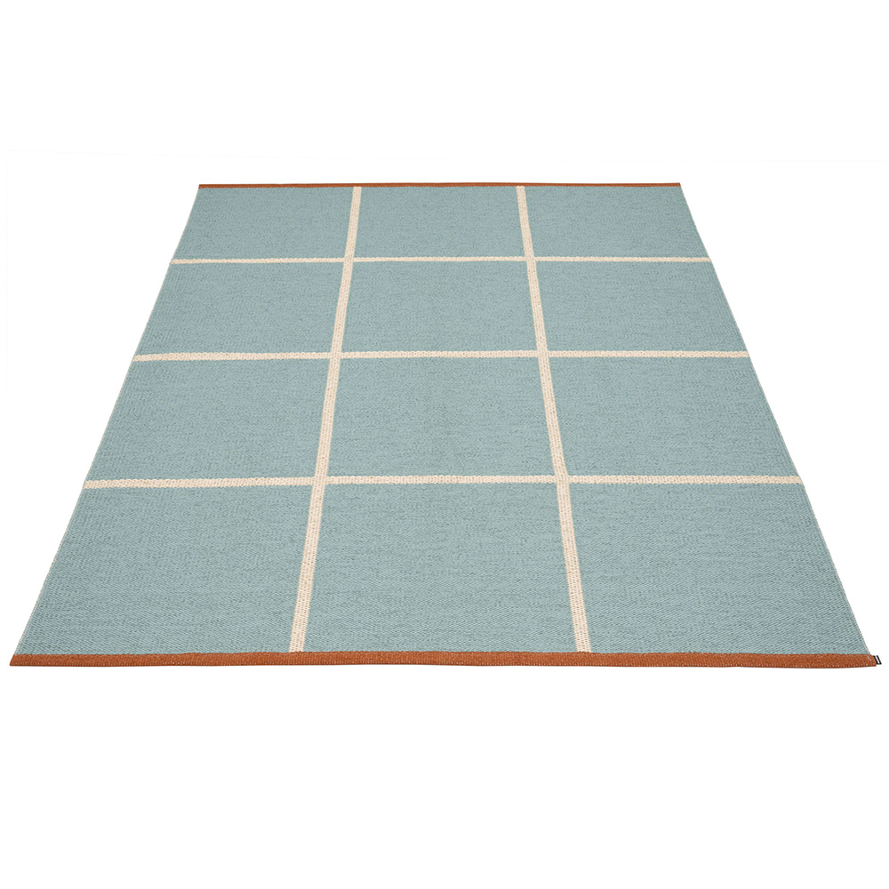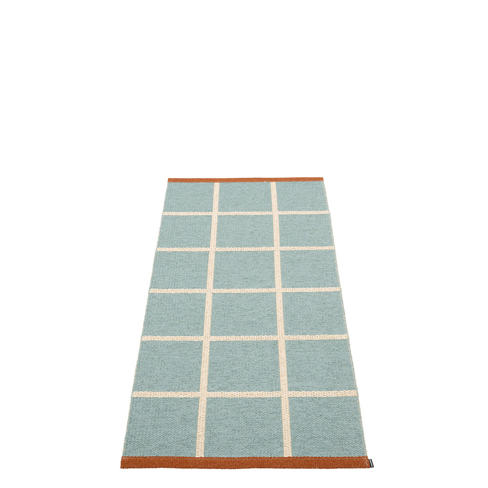 Smuk tæppeløber i giftfri plast, vævet af de bedste på markedet: Pappelina. Tæppet kan vaskes i vaskemaskine, og er meget holdbart og robust, samtidig med at det ligger helt plant på gulvet. Ikke noget med at man skrider rundt i det, som man f.eks. gør med løbere i bomuld.