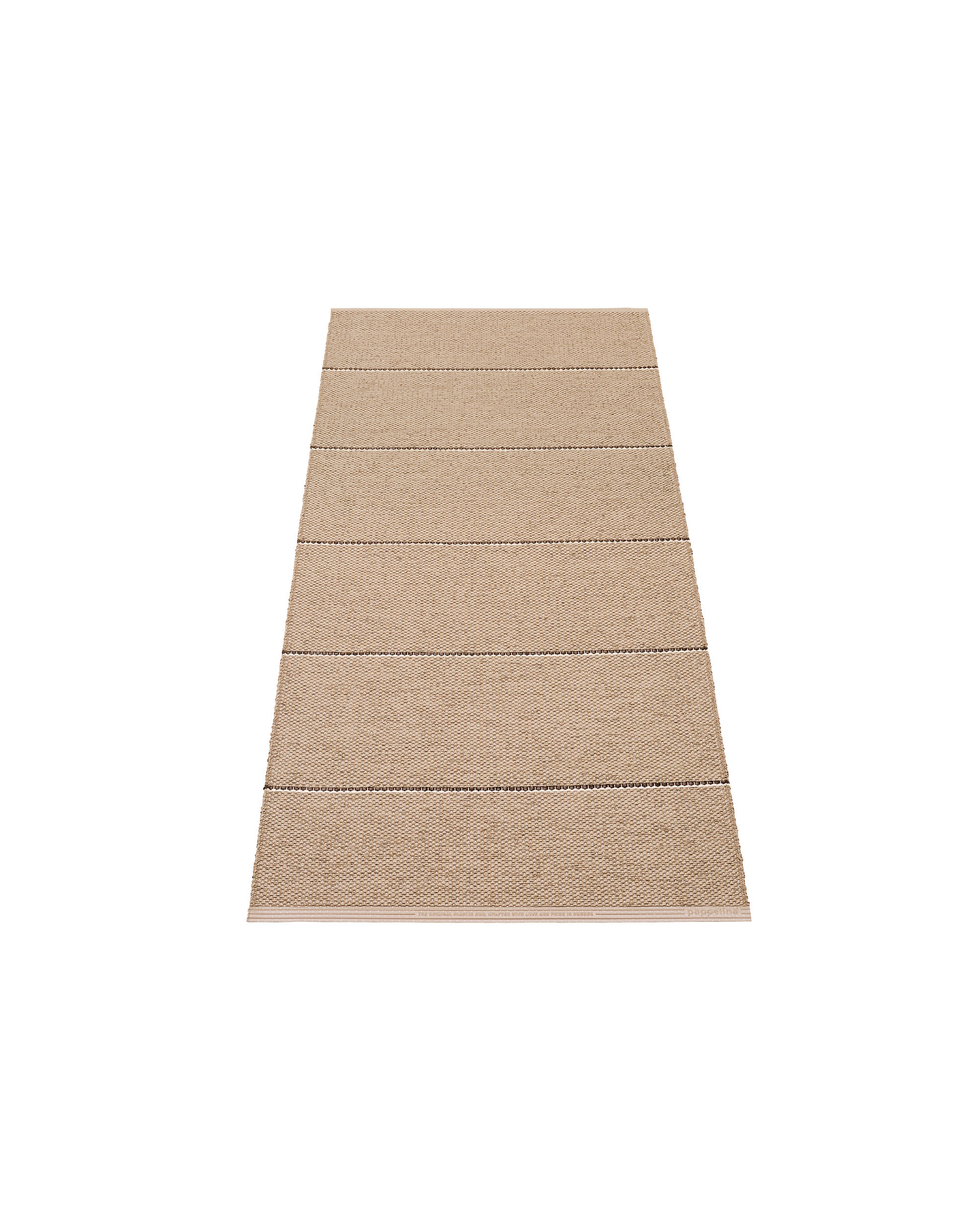 Pappelinas tæpper fås enten med en svejset, flad kant i de 2 korte ender, eller de fås med en vævet, lidt tykkere afslutning. Dette tæppe har altid svejsede kanter. Der er ikke noget, der er bedre end andet, det er blot en forskel. De svejsede kanter er lavere end selve tæppet, og dermed gode, hvis de skal kunne ligge under f.eks. en indgangsdør. De vævede er der nogen, der synes, giver et flottere og mere tæppe-agtigt look. Her hos moods har vi ikke nogen præference for det ene eller det andet. Vælg dit Pappelina ud fra størrelse og farver og design. Det er vores råd.