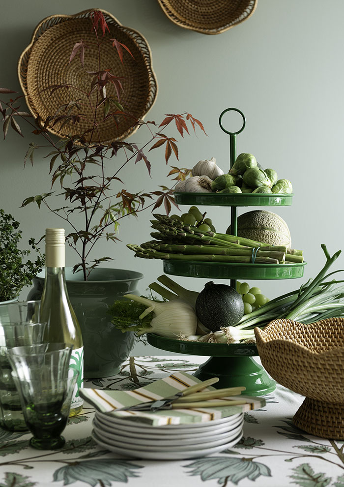 Etageren er lavet i emalje, pulverlakeret i en smuk højglans farve, og hvor ligner det altså bare en million, om du putter kager, grønt eller bare en masse pynt på.