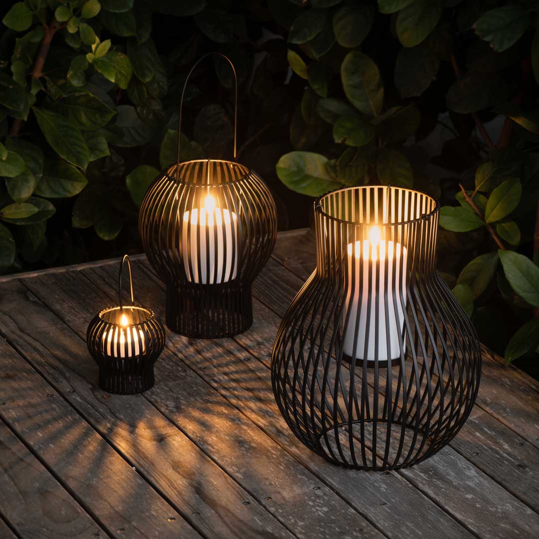 Der er 3 størrelser af lanterner, og vi anbefaler forskellige størrelser lys alt efter, hvad du foretrækker af look.