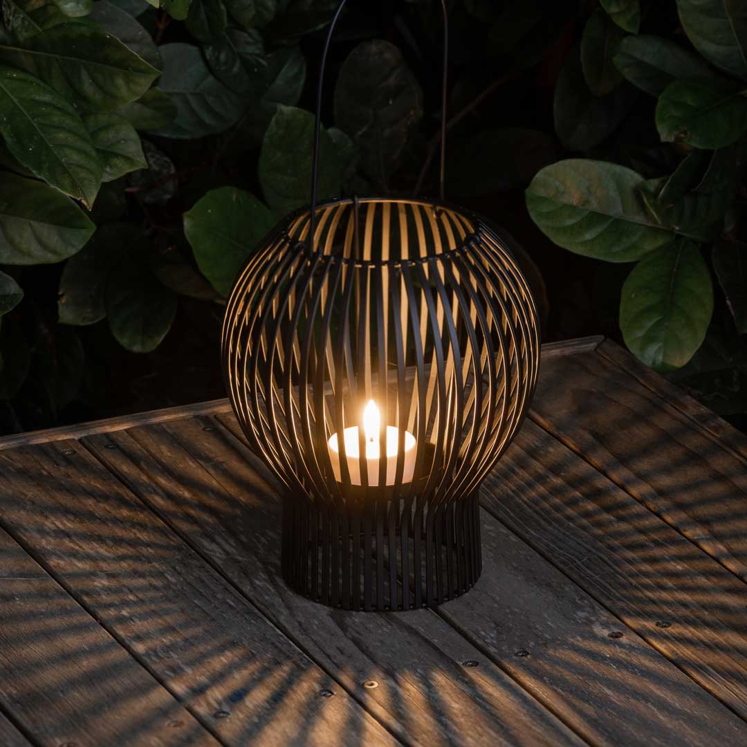 Selve lanternen er helt åben, uden glas eller låg. Derfor anbefaler vi også Uyunis patenterede udendørslys til stagen, da almindelige stearinlys kan gå ud, samt blive ødelagt at vejr og vind. Endnu har Uyuni dog ikke lavet et fyrfadslys til udendørs brug, så vi anbefaler at bruge maxi fyrfadslyset. Det kan dog ikke tåle fugt eller stå ude, så tag det med ind, når middagen er slut.