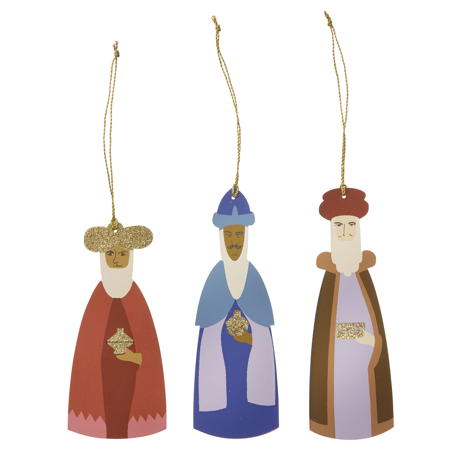 3 flotte papirjulepynt til ophæng eller bordpynt, eller hvad man nu har fantasi til at forestille sig. Forestiller De 3 vise mænd.