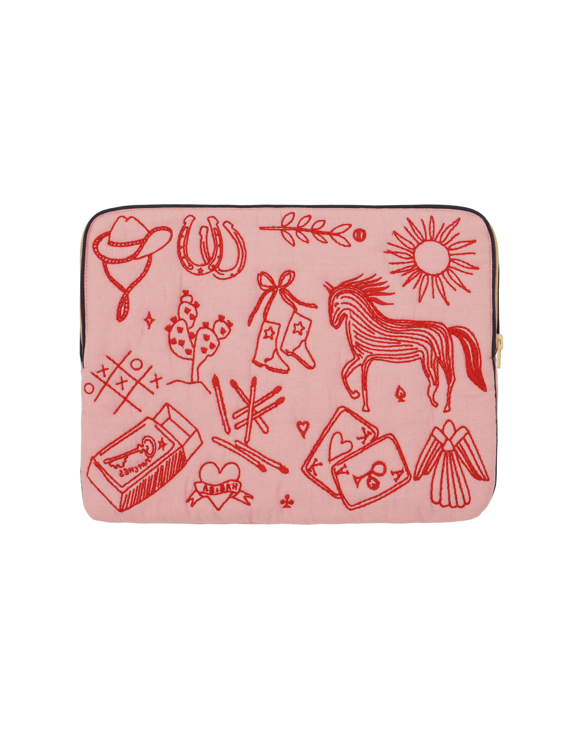 Toilettasken har det fineste cowboy nspirerede mønster i stoffet, som er det lækreste, bløde bomuldsatin.