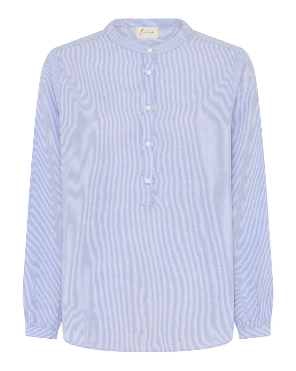 Madrid skjorten fra Frau er for alle. Den klæder simpelthen bare alle, og er en rigtig flot skjorte til basisgarderoben. Med en klædelig runding forneden, kinakrave og halv stolpelukning er detaljerne i orden. Bagpå har ryggen en enkelt læg under en lav skæring. Virkelig klædeligt snit.