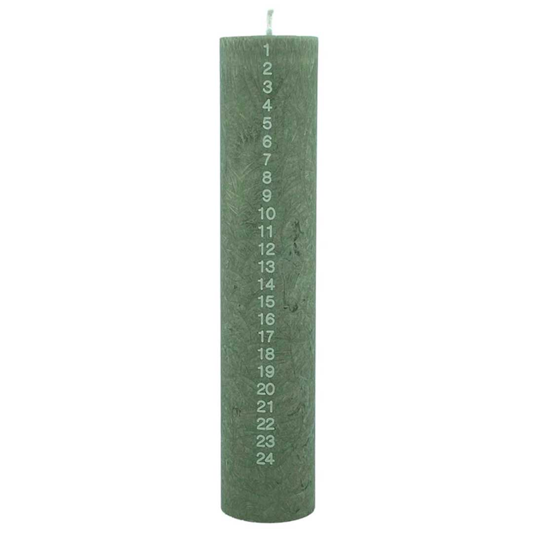 Kalenderlys i olivenvoks Ø6 cm - moss green/white