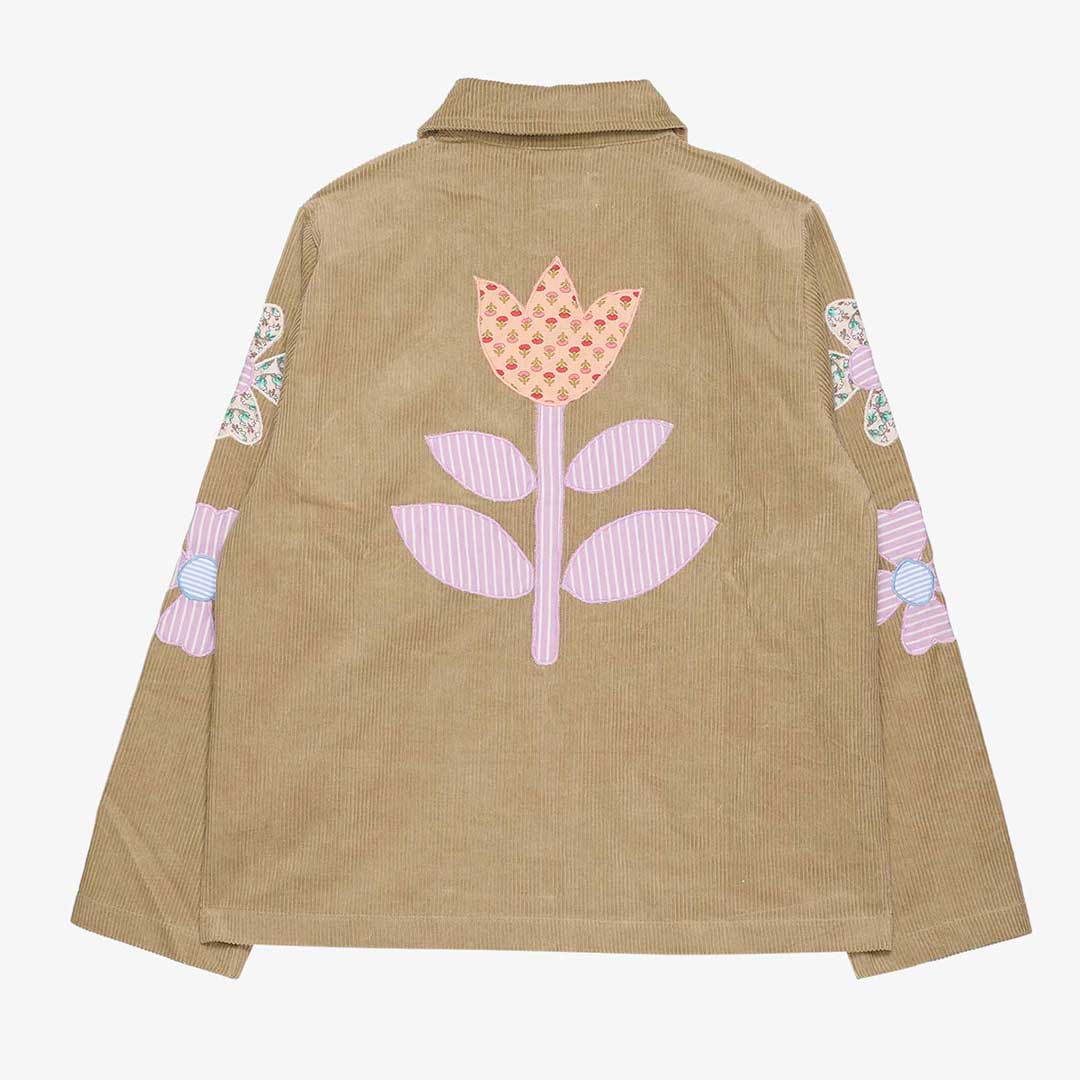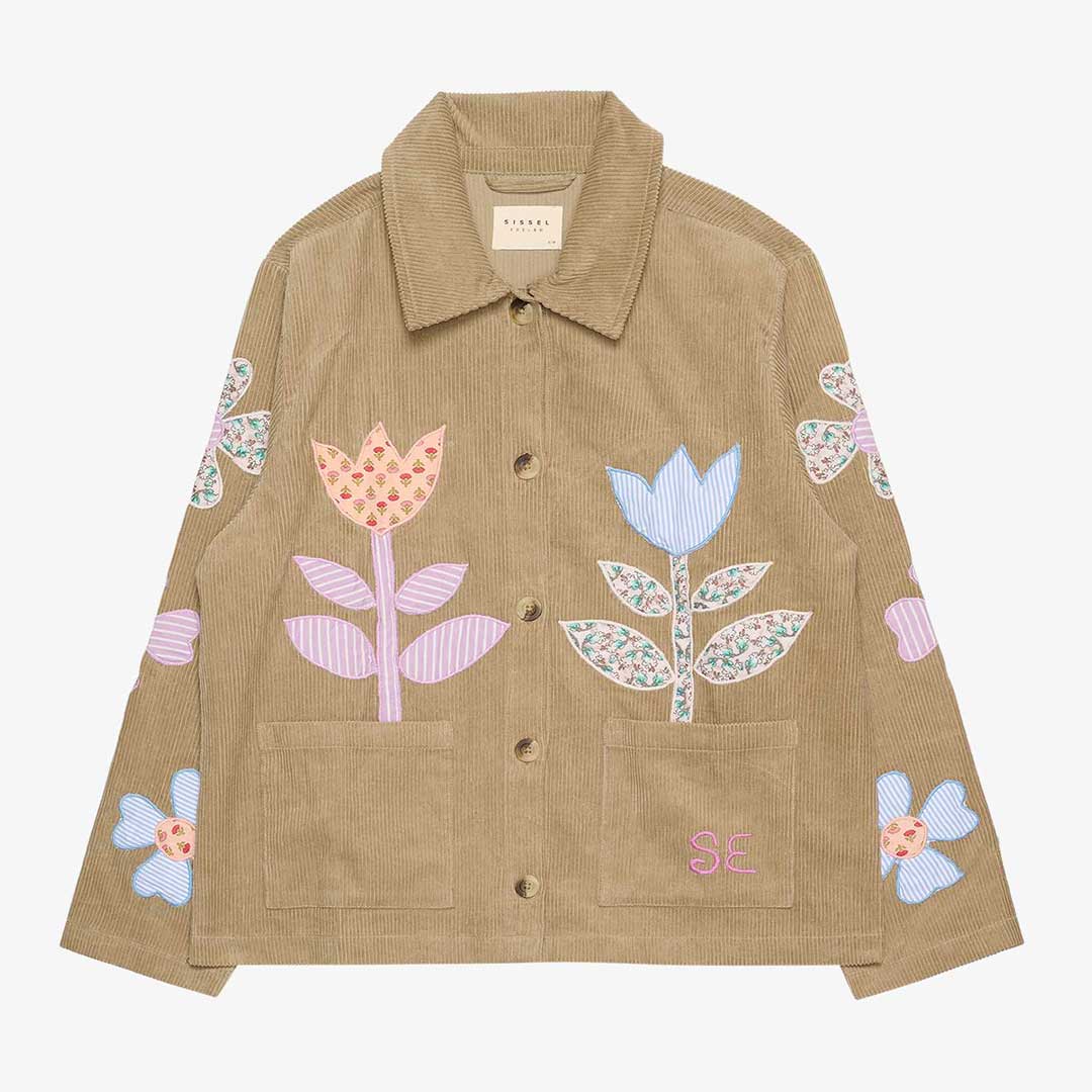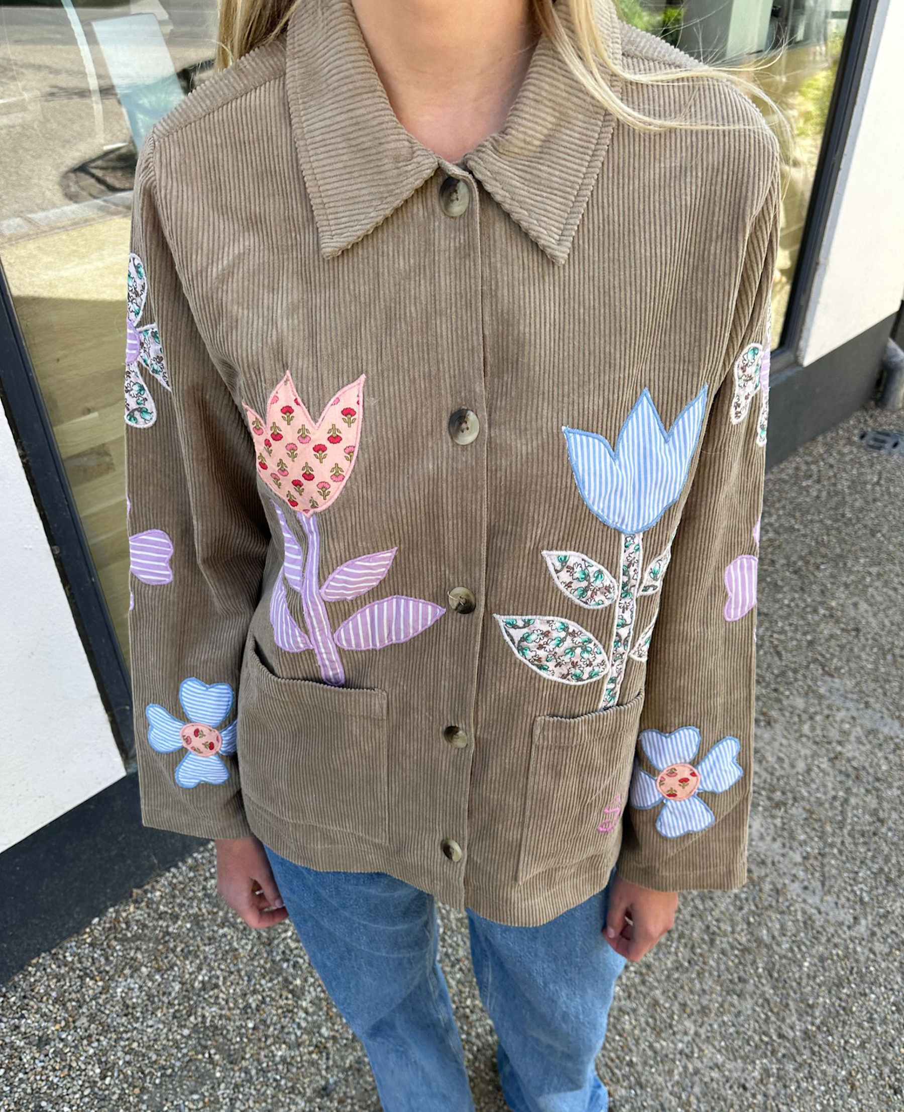 Skønneste bredriflede fløjlsjakke med påsyede boheme motiver. En rigtig moderne flower power jakke.