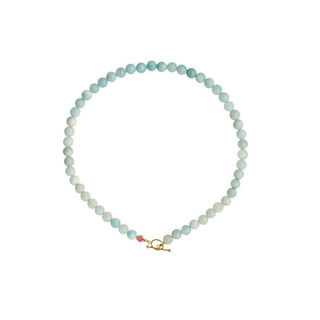 Smuk halskæde med store jadesten i en flot og stilren dæmpet cool mint farve.