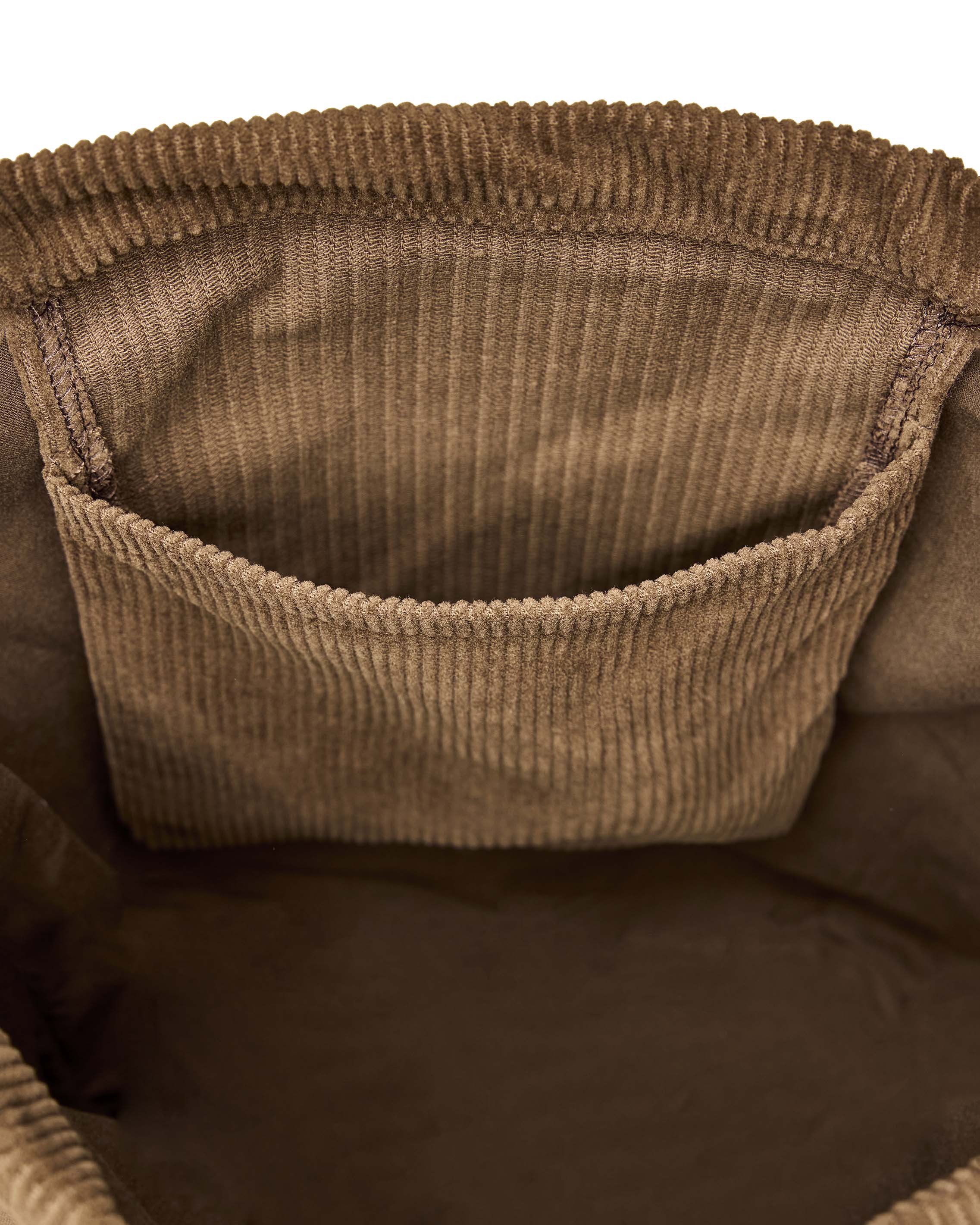 Mati tasken er lavet i riflet fløjl, og har flere lommer: 1 udvendig lomme som eks. vis kan bruges til drikkedunk, og 1 indvendig lomme til eks. småting som mobil, nøgler og pung.