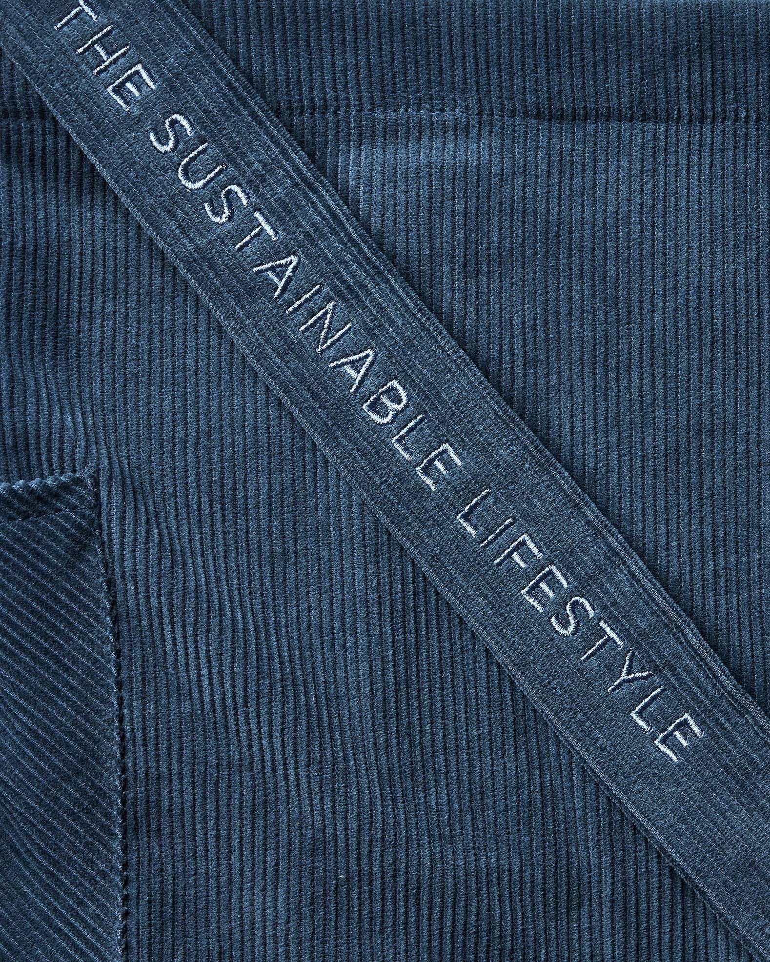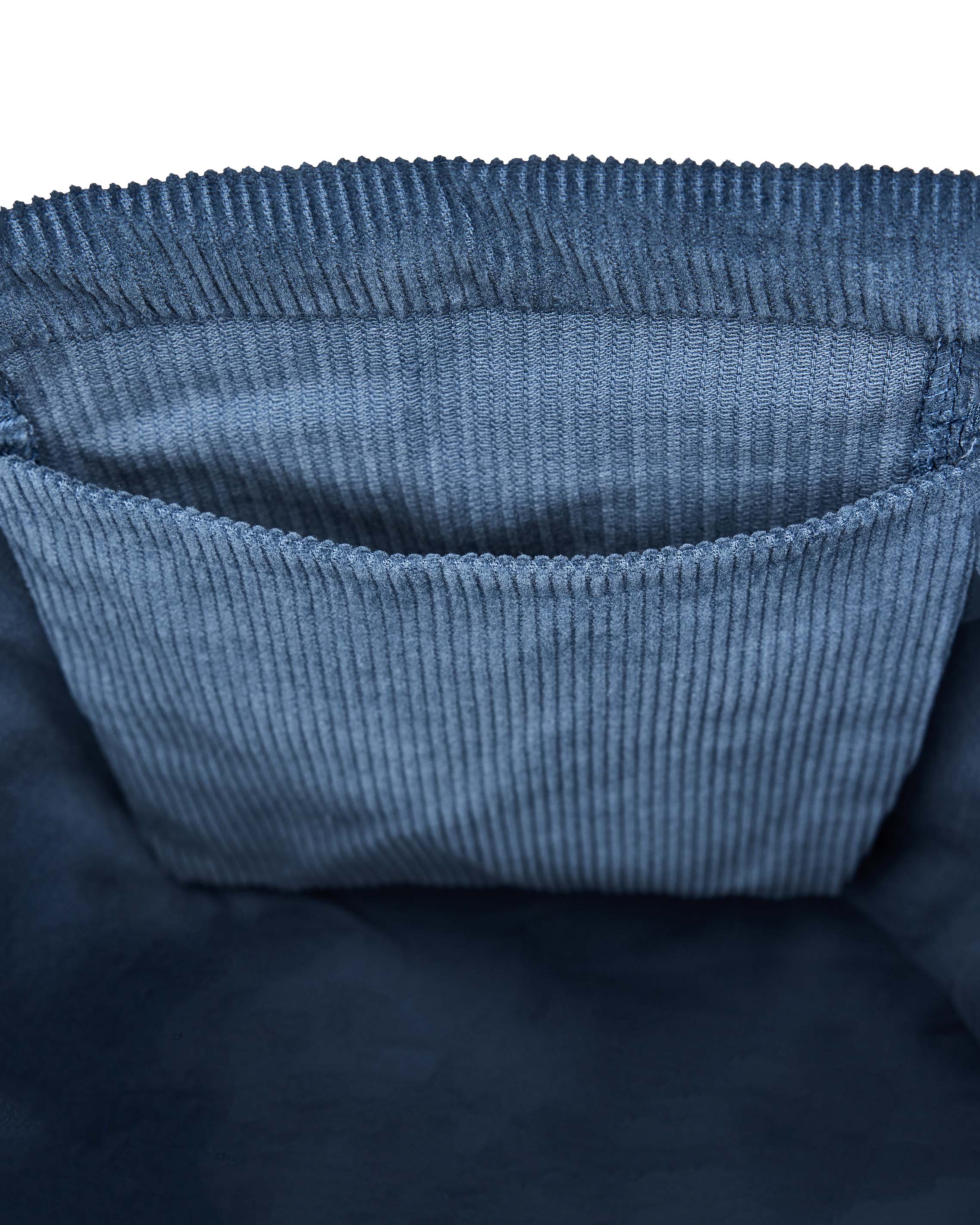 Mati tasken er lavet i riflet fløjl, og har flere lommer: 1 udvendig lomme som eks. vis kan bruges til drikkedunk, og 1 indvendig lomme til eks. småting som mobil, nøgler og pung.